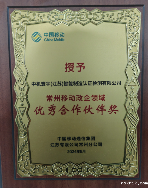 近日,在中国移动“优秀合作伙伴”表彰大会上,中机智检作为中国移动江苏省第一批受到表彰的五家合作企业之一,获评常州移动政企领域“优秀合作伙伴奖”。