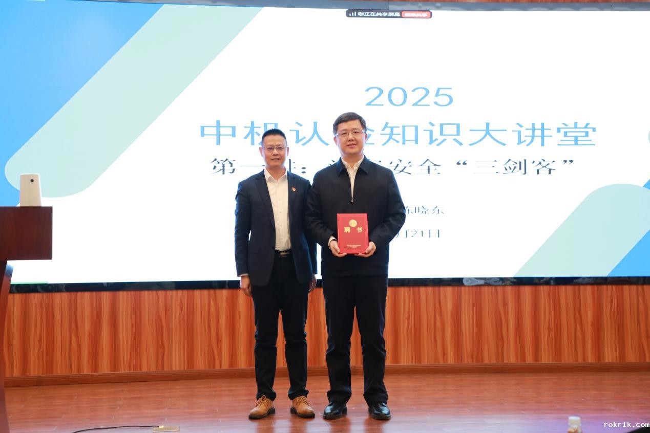 公司党委副书记、纪委书记、工会主席蔡万华发表开场讲话并为陈晓东颁发中机认检知识大讲堂客座讲师聘书。他指出,知识和技术对企业和个人发展至关重要,知识是检测认证行业的生命线,自我精进是职业生涯的终身保险,不断提升员工的专业能力,才能在激烈的市场竞争中稳步前行,赢得客户的信任和市场的认可。