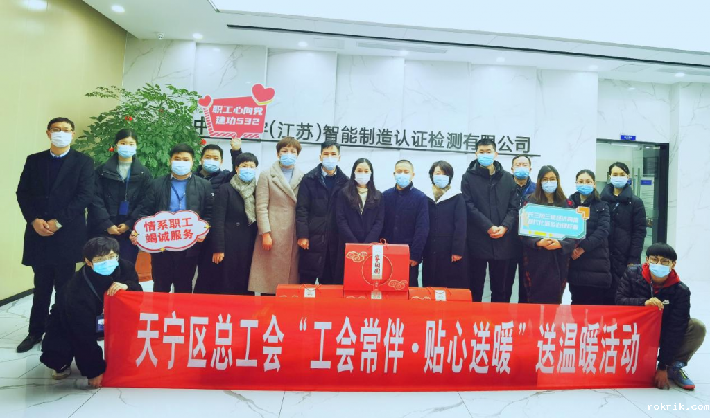 2022年1月20日,常州市天宁区常委、组织部部长沈永红,天宁区总工会主席赵浴宇,副主席蒋厉英,开发区组织人事局局长徐树鼎,开发区总工会副主席魏迎桥,以及开发区管委会副主任夏敏等一行莅临中机智检调研,开展“工会常伴 贴心送暖”天宁区总工会送温暖活动,并慰问公司员工。