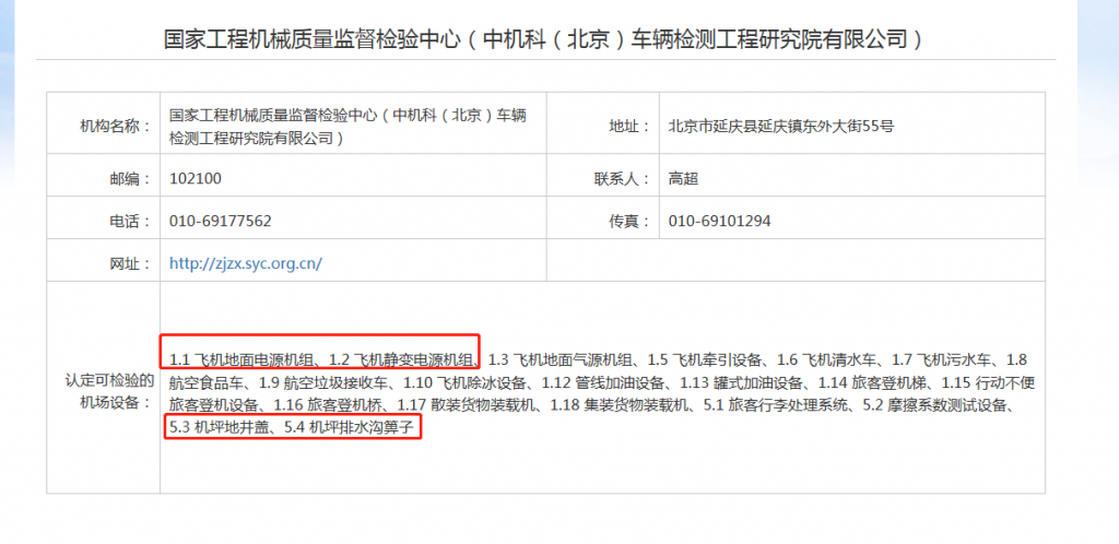 2020年6月29日,中国民用航空局发布《民航局关于批准国家工程机械质量监督检验中心增加民用机场专用设备检验类别的公告》,民航局批准我中心增加飞机地面电源机组、飞机静变电源机组、机坪地井盖、机坪排水沟箅子四项民用机场专用设备检验类别。