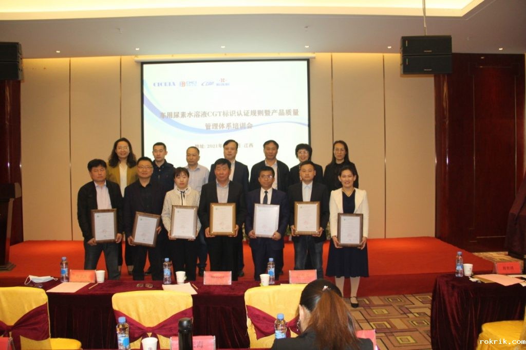 2021年4月24日-25日,中汽认证、中国内燃机工业协会、中国内燃机工业协会车用尿素水溶液分会(以下简称:尿素分会),在江西省九江市彭泽县联合举办了车用尿素水溶液 CGT&CCAP 评价/认证及质量管理体系交流会暨首批CGT&CCAP获证企业颁证仪式。中汽认证总经理何世虎、产品总工程师巩金龙、体系总工程师周育清,中国内燃机工业协会副秘书长杨环山、行业专家及企业代表共计60余人参加了此次会议,会议由尿素分会秘书长黄建利主持。