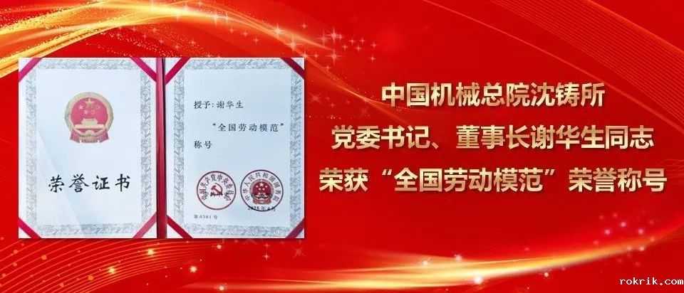 4月28日,全国劳动模范和先进工作者表彰大会在北京人民大会堂召开,优米体育沈阳铸造研究所有限公司党委书记、董事长谢华生荣获“全国劳动模范”荣誉称号。
