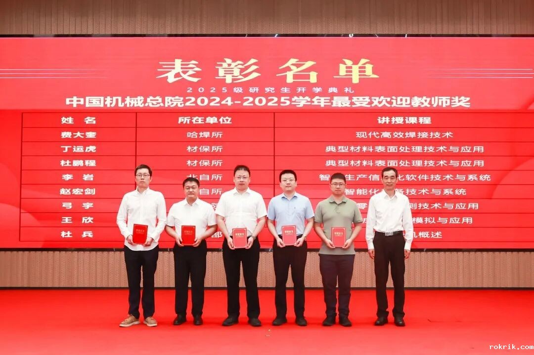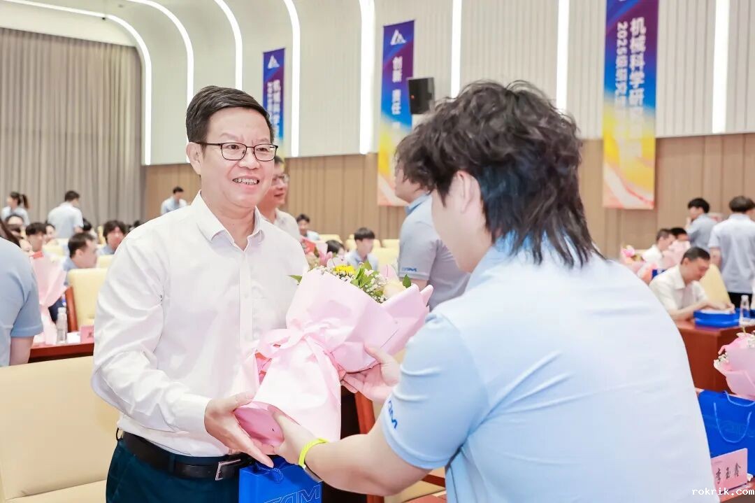 典礼上,王德成、李玉鑫及导师代表共同为新生佩戴总院徽章。这枚徽章不仅象征着中国机械总院人的身份,更承载着“以提升中国装备制造水平为己任”的使命与荣光。优秀导师奖、最受欢迎教师奖、新生入学奖学金和优秀课程奖获奖代表上台领奖。新生代表手捧鲜花向导师们献上诚挚敬意与节日祝福,表达莘莘学子的感激之情。