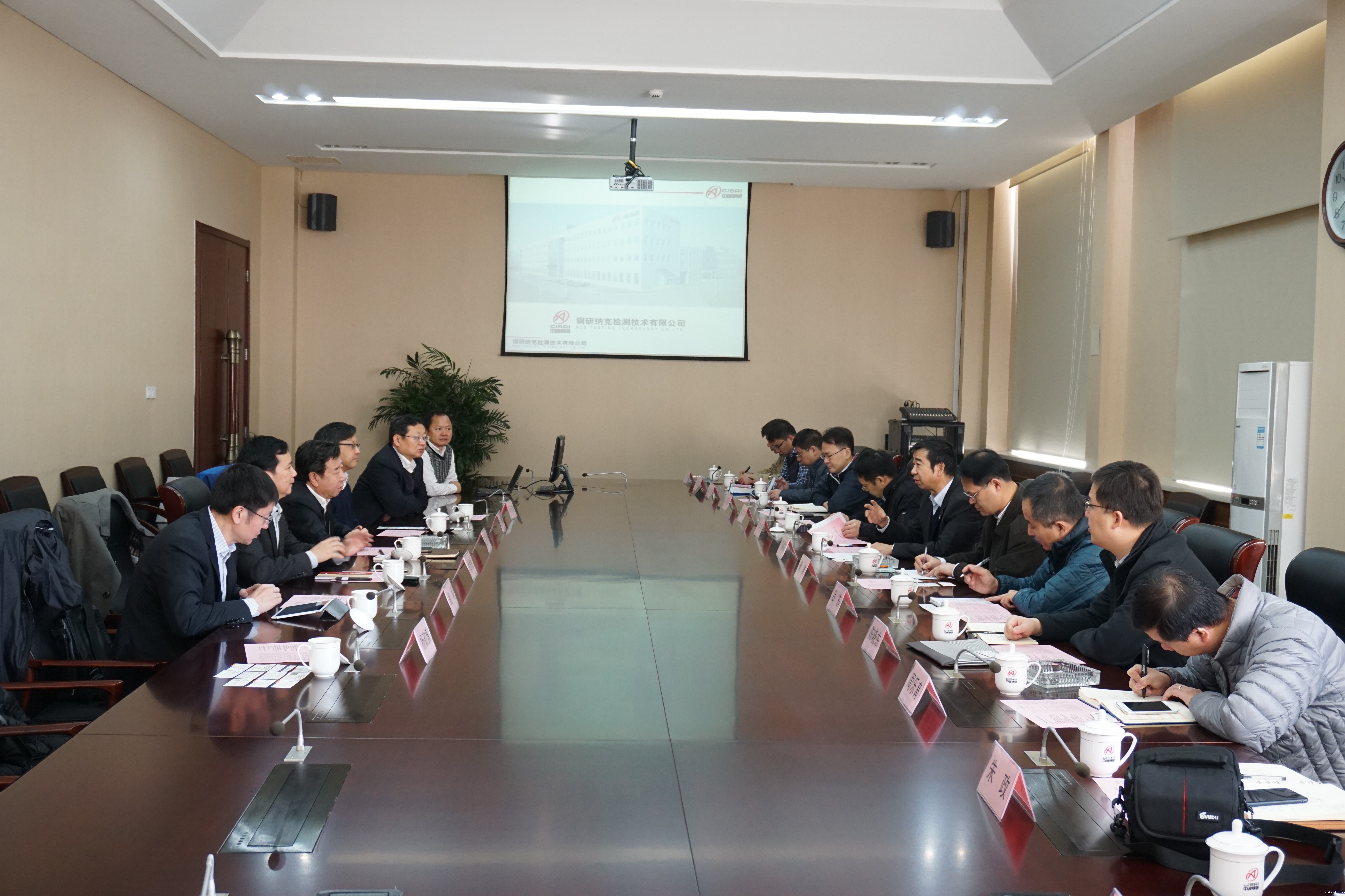 中国钢研集团科技部杜挽生主任、钢研纳克检测公司贾云海总经理、鲍磊党委书记,机械总院行业发展部刘中星副部长、机械总院沈铸所唐骥副所长、机械总院北自所孟祥宇副所长、机械总院中机生产力中心肖承翔副主任、机械总院中汽认证中心陈晓东主任助理及相关人员参加了本次对接交流。