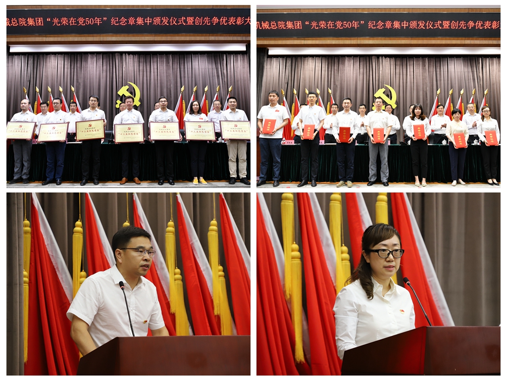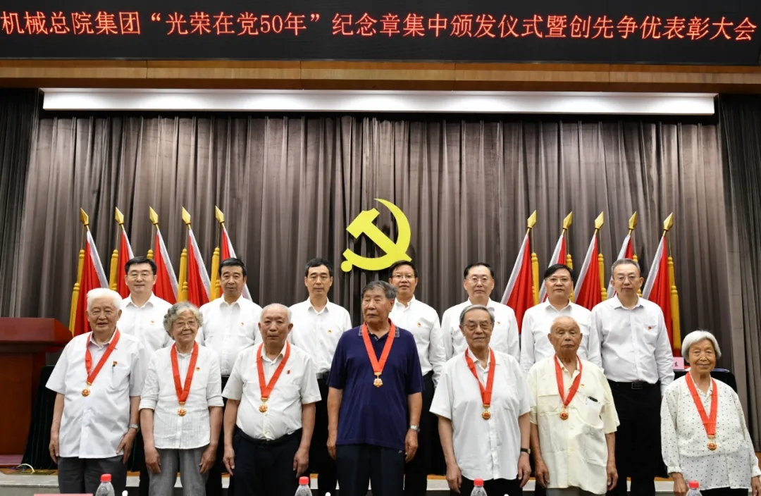 6月29日,机械总院集团在京召开“光荣在党50年”纪念章集中颁发仪式暨创先争优表彰大会,深入学习贯彻习近平总书记重要讲话和指示批示精神,庆祝中国共产党成立100周年,表彰先进、树立典型,激励引导各级党组织和广大党员、干部员工开拓进取、扎实工作、创先争优,以高质量党建引领集团高质量发展,助力集团“十四五”开好局、起好步。集团党委书记、董事长王德成出席会议并讲话,党委副书记、总经理王西峰主持会议,党委副书记李玉鑫宣读表彰决定,党史学习教育中央企业第八指导组一行出席会议。
