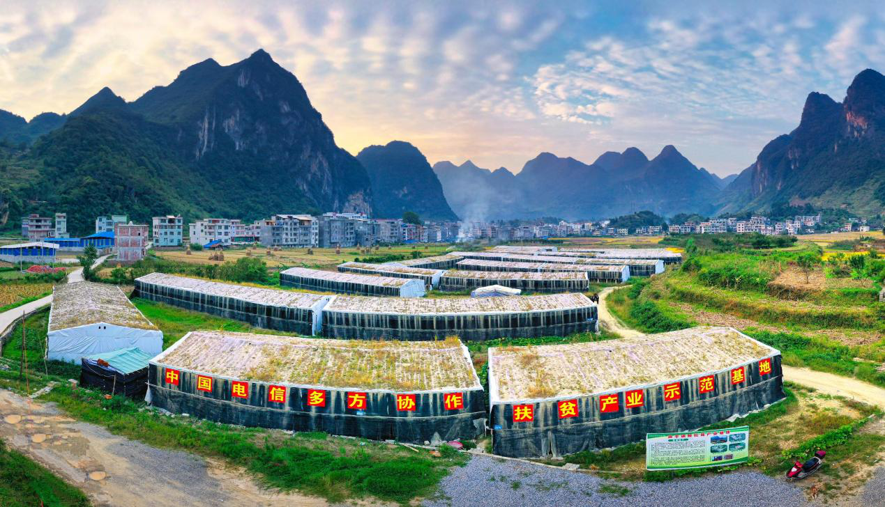 百色市的田林县,则在中国电信的帮扶下因地制宜地建成了555个姬松茸种植大棚,年产姬松茸2800吨,产值2500万元,带动1200户群众增收。通过“村民合作社+龙头企业”联合的发展模式,解决了姬松茸产业生产中的技术、管理、销售等问题,而产业园区的建设则实现了产业从量到质的飞跃式发展,让长期可持续“造血”成为可能。