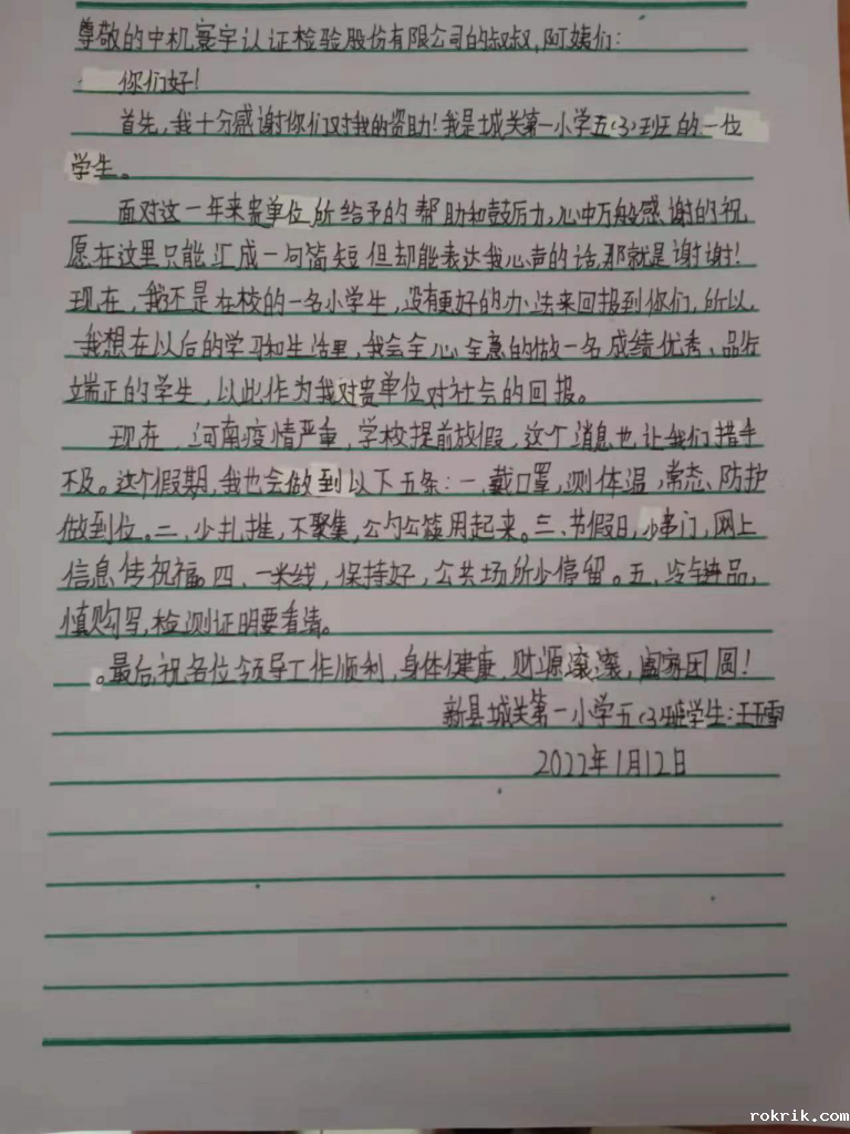 2022年1月,中机认检收到来自革命老区河南新县金兰街道办事处金兰社区脱贫户孩子们的三封特殊来信。2021年7月6日,在中机认检党委“学党史、悟思想、办实事、开新局”切实为革命老区新县群众办实事的决策部署下,中机认检总部直属支部、中机检测第一党支部、中汽认证事业部门联合党支部对新县贫困生进行资助。半年以来,接受资助的孩子学习成绩有所进步,学习环境有所改善,心存感恩、心念认检,特来信表示感谢。