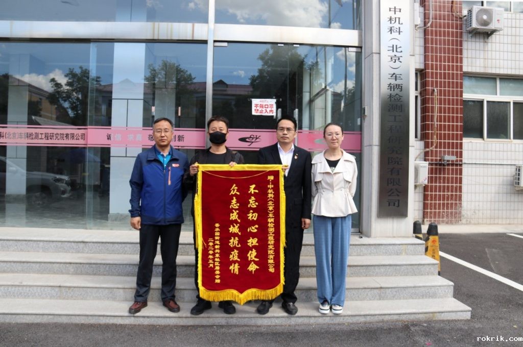 5月27日上午,延庆区新兴东社区居委会副主任周玉彬同志送来一面绣有“不忘初心担使命,众志成城抗疫情”的锦旗,代表社区对中机检测干部、职工在社区疫情联防联控工作中无私无畏的辛勤付出表示敬意及感谢。