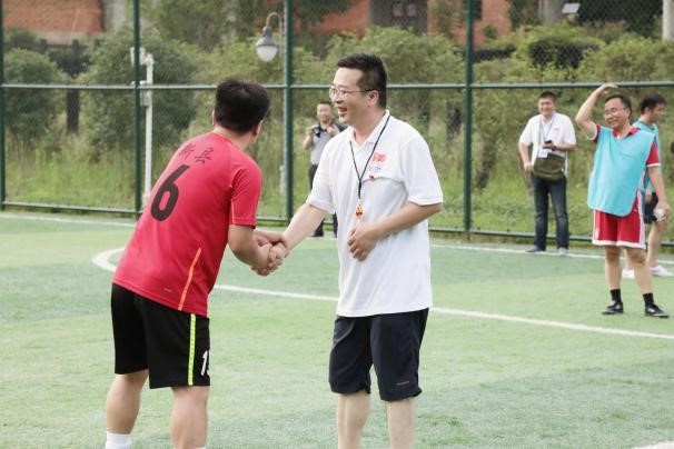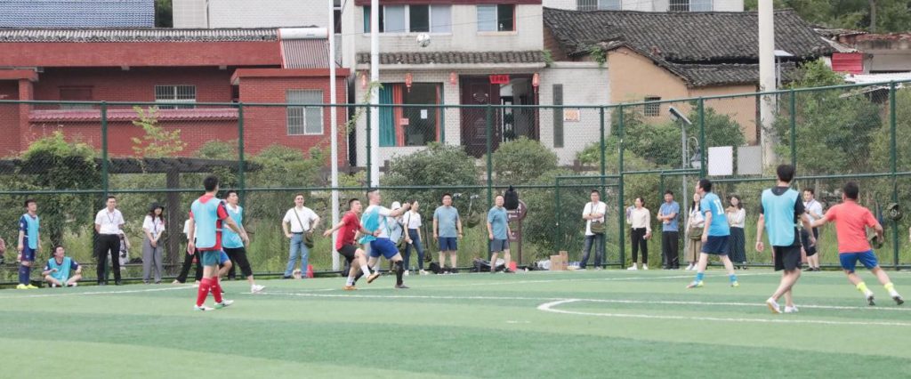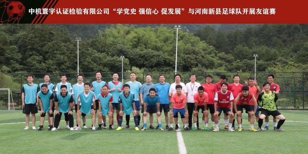 为促进乡村振兴,增进企业党员职工们的乡土情怀,加强企业与乡村间双边合作。在闲暇时间中机认检党员干部与河南新县足球队举行了一场足球友谊赛。连续数日的暴雨,将球场变得湿滑,中机认检党委书记、董事长、总裁判付志坚,在赛前进行动员,本着“友谊第一比赛第二”的原则,吹响哨音,中机认检与新县足球队的友谊赛正式开始。