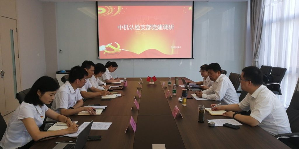 2020年9月8日,中机认检党委书记、董事长付志坚,部副部长(主持工作)雷叶琴赴中机智检党支部进行调研,听取中机智检党支部党建工作汇报,并与党员干部进行谈话交流。