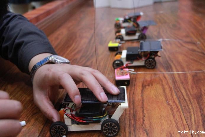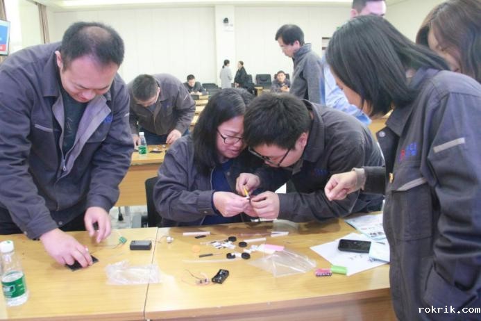 第三关——绿色节能创新实践,该项比赛对各小组的团结协作能力进行了考验,考察了各组人员的创新实践能力,活动要求本着绿色环保、创新发明、团结协作的原则,由主办方提前收集到实验室及周边的废料素材进行二次利用。10:40分在主持人令下比赛开始,各小组领取素材发散思维精心设计制作小发明,材料不限、思路不限、通力合作,快速各类元件,黏贴木质板材,连接天线信号收发器,在焦灼的35分钟内,各组完成了自己的遥控车简易模型。最后,评审组四名专家根据各组的作品,以机械结构、可靠性、美观性、动能运用等方面进行综合评定,并最终核算分数。