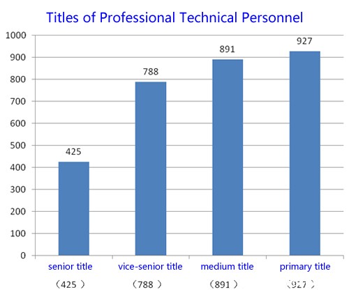 The Academy has 5002 staffs in total, including 3662 professional technical workers, which accounts for 73% of the total staffs number, the structure of professional technical personnel has been classified according to different titles and degrees as below: