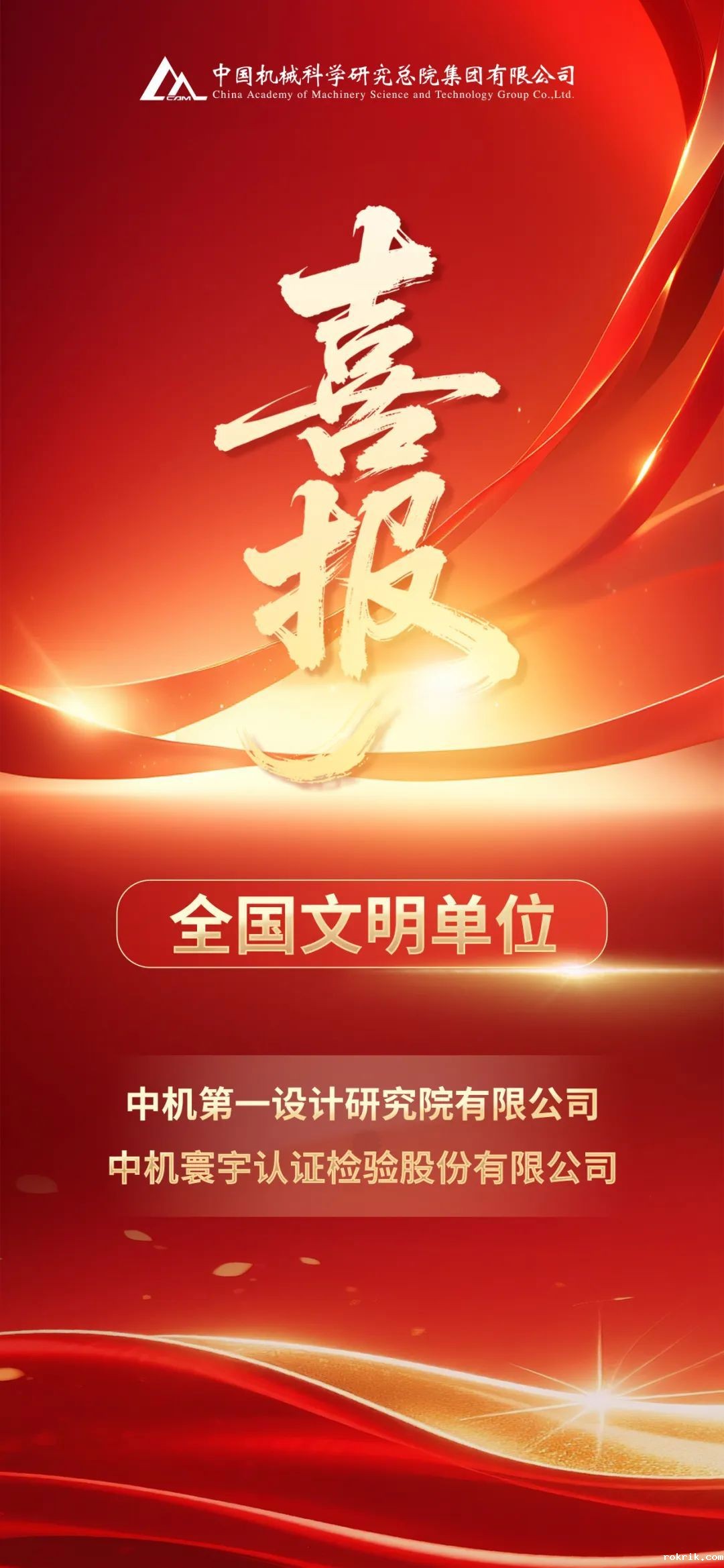 全国精神文明建设表彰大会5月23日在京召开。会上传达习近平总书记近日对精神文明建设工作作出的重要指示,并宣读表彰决定。中国机械总院中机第一设计研究院有限公司、中机寰宇认证检验股份有限公司2家单位被授予第七届“全国文明单位”荣誉称号。