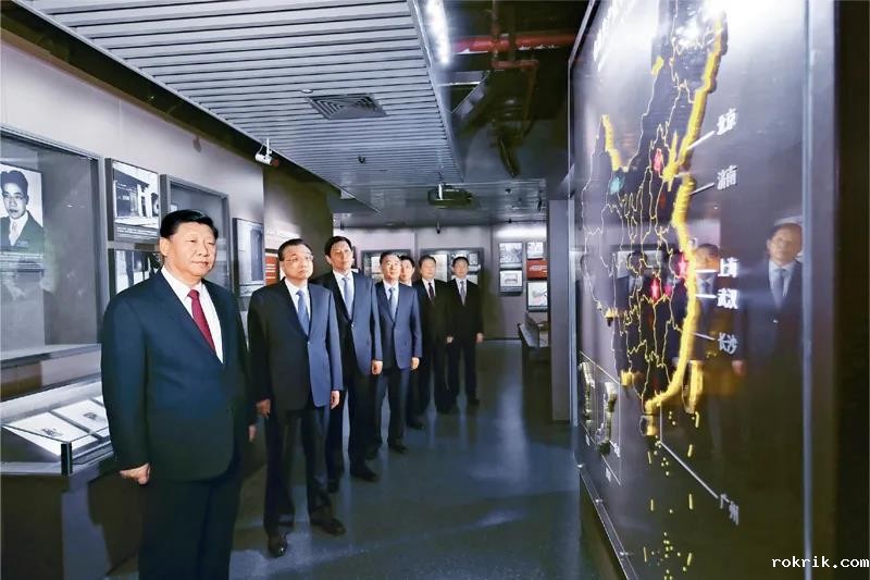 2017年10月31日,中共中央总书记、国家主席、中央军委主席习近平带领中共中央政治局常委李克强、栗战书、汪洋、王沪宁、赵乐际、韩正,瞻仰上海中共一大会址和浙江嘉兴南湖红船。这是31日上午,习近平等在上海中共一大会址纪念馆参观。新华社记者 兰红光/摄