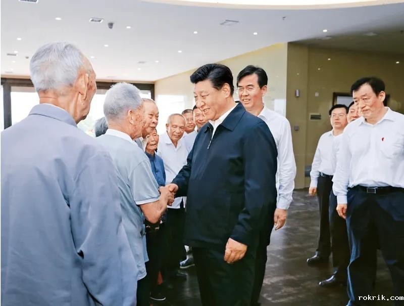 2019年5月20日至22日,中共中央总书记、国家主席、中央军委主席习近平在江西考察,主持召开推动中部地区崛起工作座谈会并发表重要讲话。这是习近平在赣州市于都县中央红军长征出发纪念馆会见于都县的红军后代、革命烈士家属代表。新华社记者 鞠鹏/摄